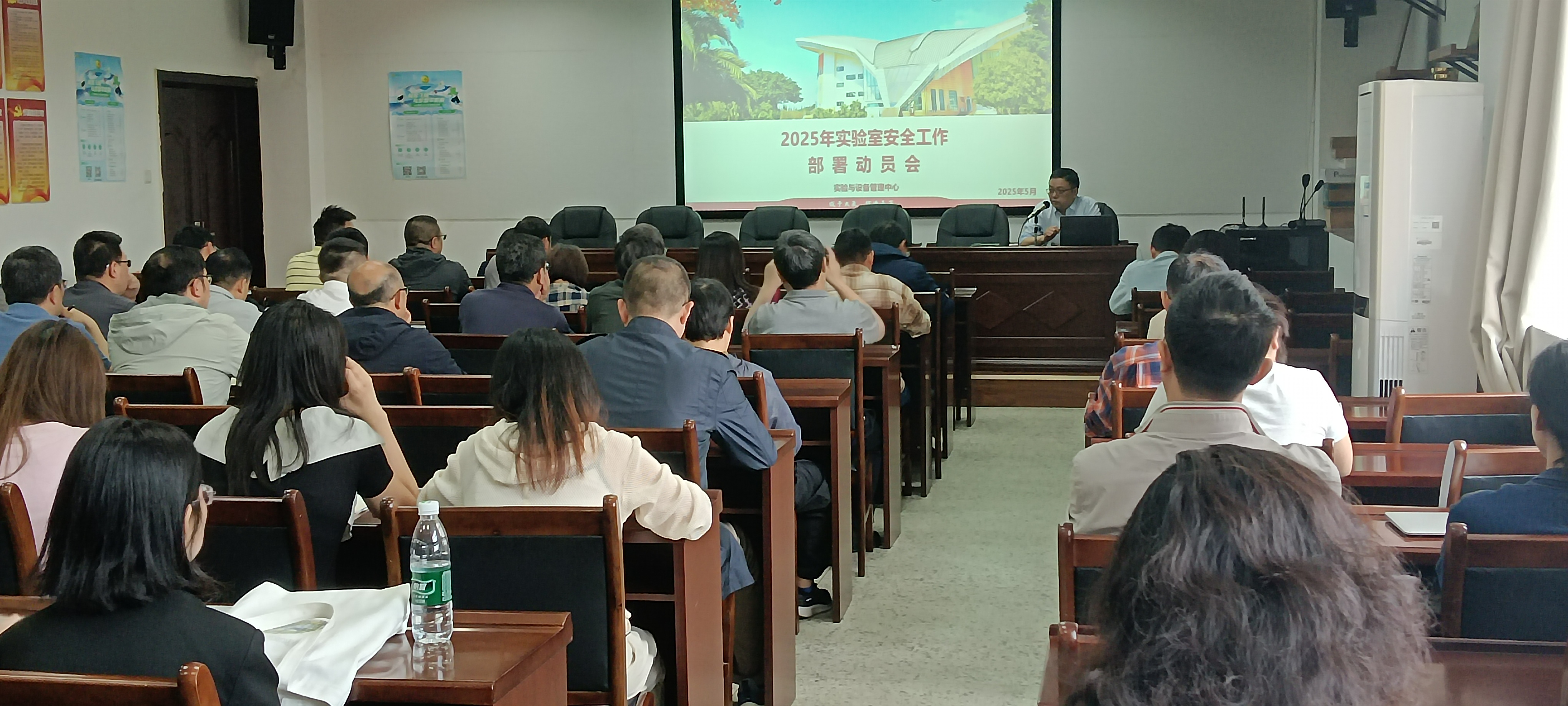 2025年4月30日上午,学校组织召开2025年实验室安全工作部署动员会。实验与设备管理中心负责人,各学院分管实验室安全工作的领导、实验室负责人、安全管理员等50余人参会,会议由实验与设备管理中心主任严寒冰主持。
