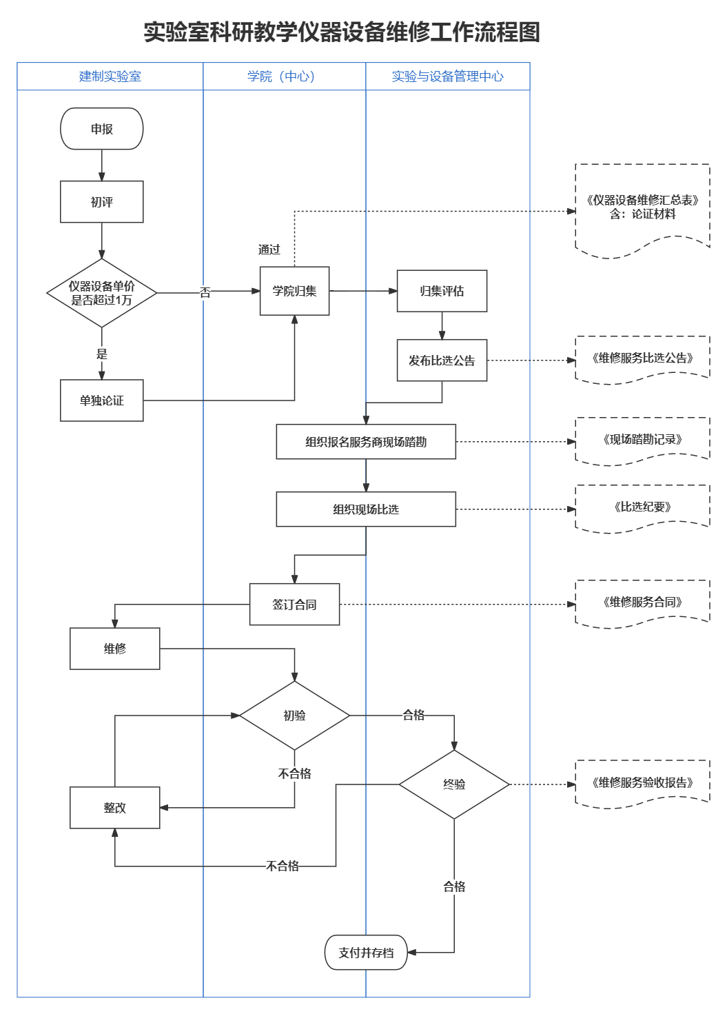 365英国上市集团实验室科研教学仪器设备维修工作流程图
